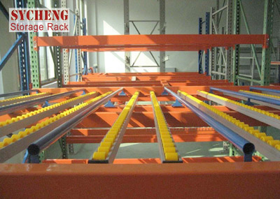一、貨架每層前后橫梁之間設置滾輪式鋁合金或鈑金流力條